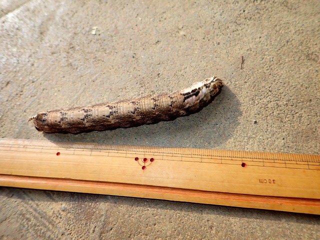 先月末。ガレージに巨大ないもむしが出現。このスケールのを