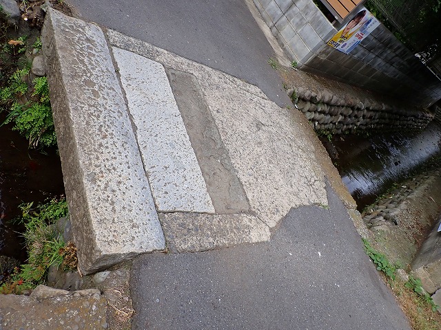 巾1、5メートルほどの小さな石橋。まん中の黒い石