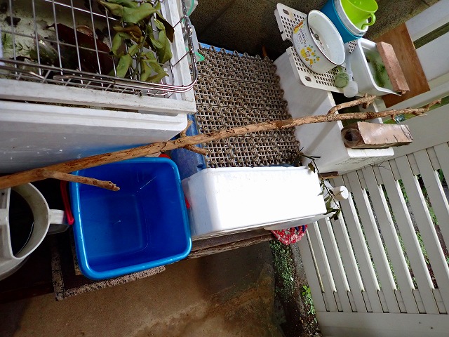 こちらはガレージ。ヘイケの幼虫とヒメタニシの飼育槽。