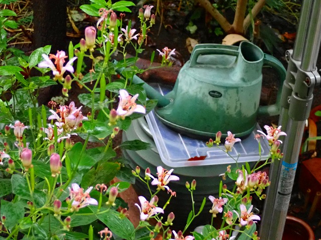 この間は、如雨露の水が少なくて蓋から落とされ、コウホネの鉢を