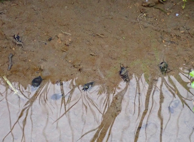 幼虫を放流する「湧水園に近づくほど、水がれ状態。
