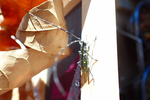 ☆彡わが家にきて約1ヶ月のキボシカミキリの日向ぼっこ。
