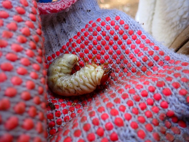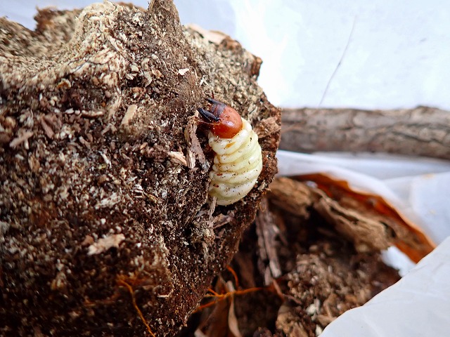 連れてきたKさんが、今度はコクワガタの幼虫を発見!