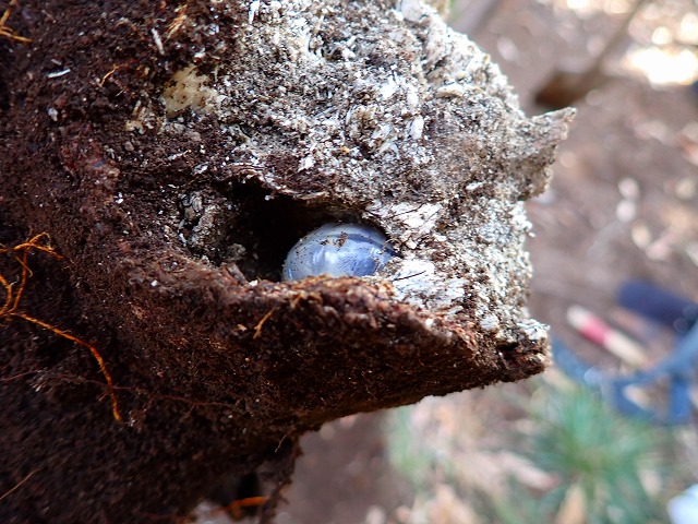 誰かに踏まれそうで、近くの雑木林に避難させました。