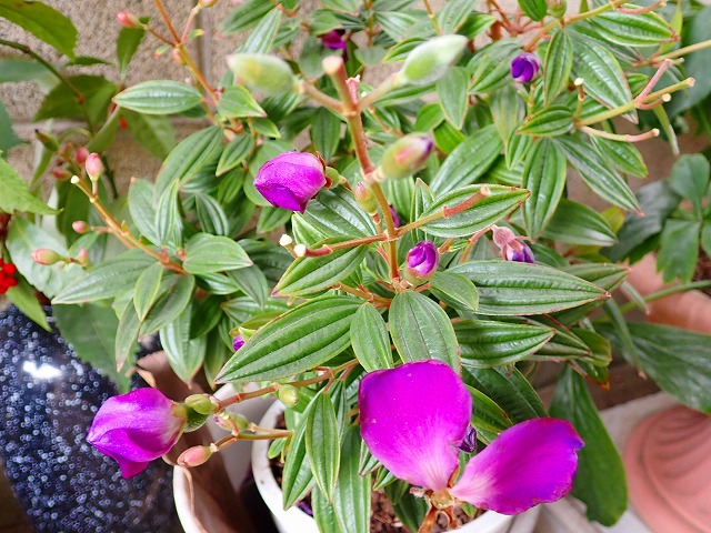 ノボタン(コートダジュール)も鉢植えのまま冬越し中。