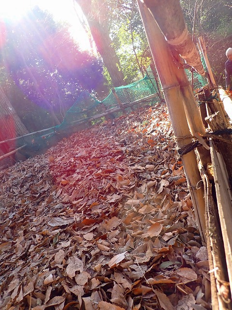 右下~~落ち葉溜め。新しい落ち葉の下に、カブトムシの