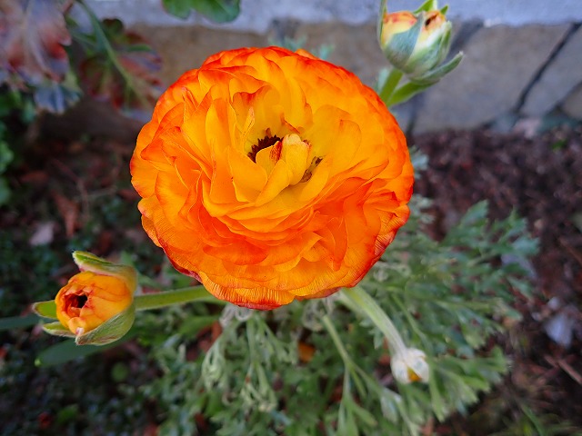 ラナンキュラス。蕾を3つもつけてママ頑張っています。