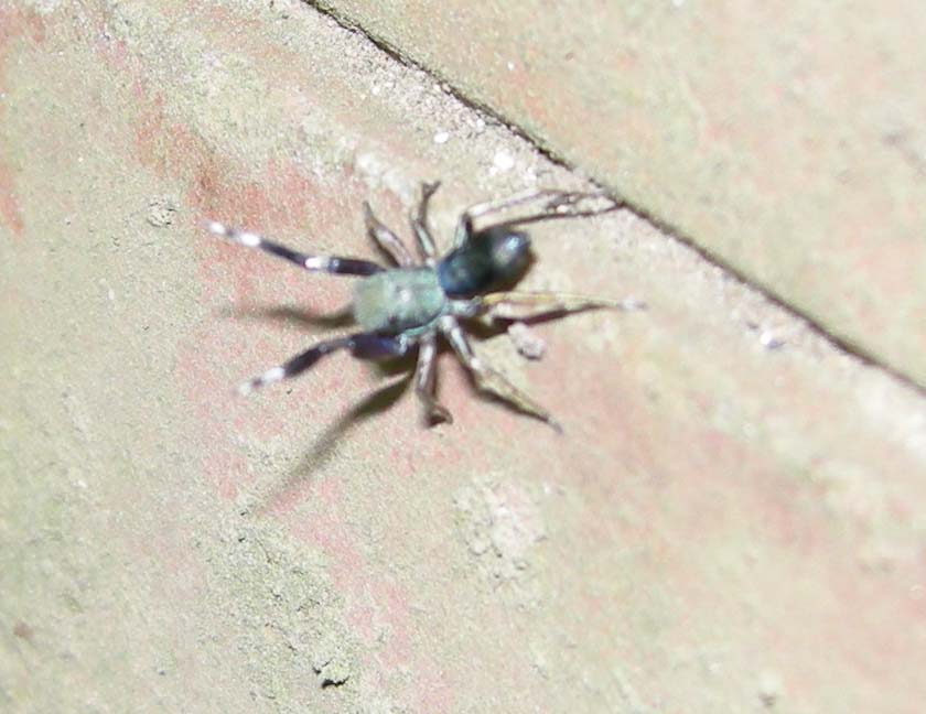 | アオオビハエトリ 朝日を受けてる走りグモ 頭が青銅色だね 前脚の先が白くて ちょっと神聖だね 迷いの多すぎる動作で 他人を惑わせるね きみの捕食は わたしの食事に似てるね 不安を眩ますために 食べるんだよね 日陰に入った走りグモ 頭が灰色になったね 煉瓦の汚れが気になるらしいね 気になるものが そこらじゅうにあって 目が回ってしまいそうなあたりも きみとわたしは似てると思う もしよかったらいっしょに 不安を眩ますための食事をしようよ 〜〜西沢杏子・詩〜〜 |