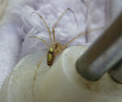 里山や山地に棲むクモだそうですが、なぜか洗面所に。