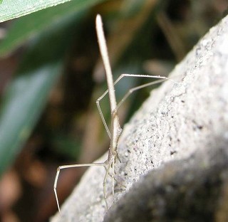 2005・11・3 東京都・高尾山・♂ 体長約2センチ。糸かと思うほど細いクモ |