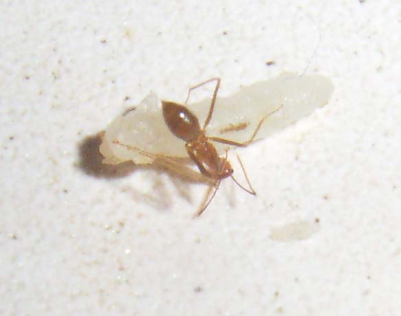 2007・3・10 「エレファント・サンクチュアリ」食べこぼしの「ナシゴレン」の米粒にきたアカアリの仲間。 |