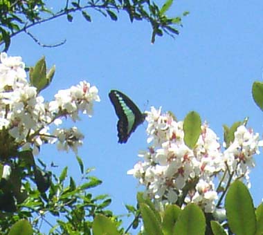 アオスジアゲハ 雨上がりの路傍に 突如顕われた 青いステンドグラス 目を細めて覗けば見える 青い希望 まぶしい未来 耳をすませば 聞こえる パイプオルガンの 尾を引くのどかな音色 イギリスの田舎町 迷い込んだ古い協会 あの静寂がよみがえる 〜〜2015年10月10日〜〜 |