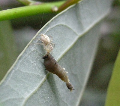 | 2005・9・19 国分寺・自宅 近くの葉裏では、一足お先に蛹になっている |
