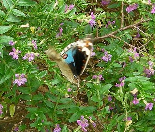なかなか翅を開いてくれないけれど、開いてくれると、目が覚めるようなブルーに魅せられる。