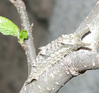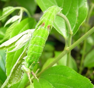 | 2009・4・3 国分寺市自宅 冬越して、無事にエノキに上がってきました! 4、5齢?幼虫 |