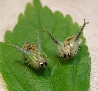 2009・5・7 国分寺市自宅 左〜〜アカホシゴマダラ 右〜〜ゴマダラチョウの脱皮殻 |