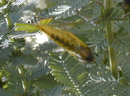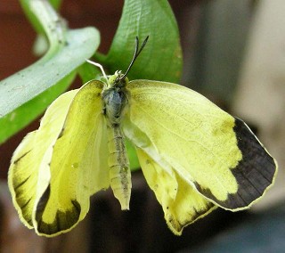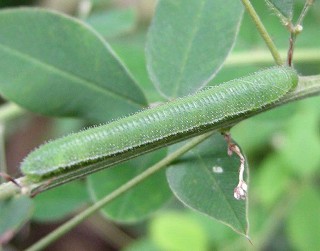 | 2007・9・7 国分寺・自宅 葉っぱは白萩。この上に覆い被さるようにミモザ があります。どちらもキチョウの幼虫の食草。 |