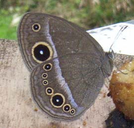 光る紋があるところから♂と同定、山荘のベランダでバナナを食べている