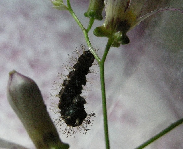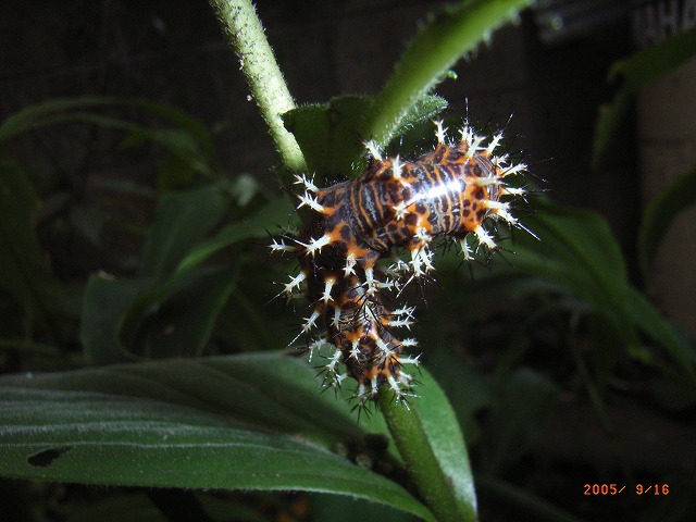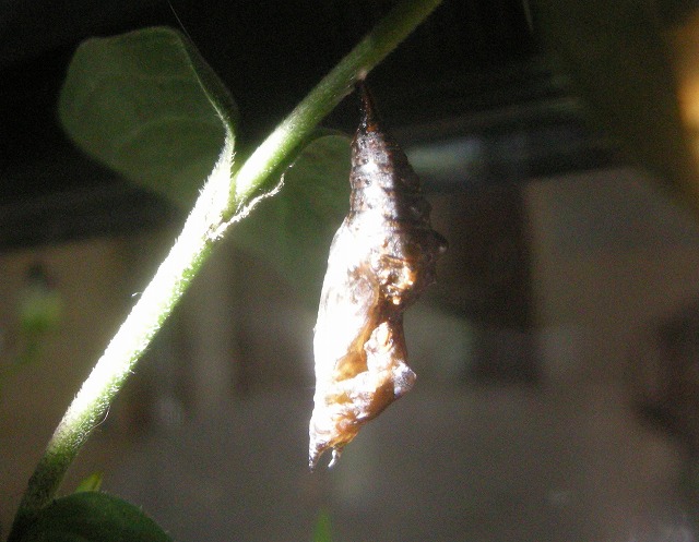 2010・9・10 国分寺市自宅 庭のホトトギスにいた幼虫を飼育。7日に蛹化 |