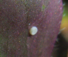 | 2005・10・13 国分寺市東元町 カタバミの葉裏に産み付けられた卵 |