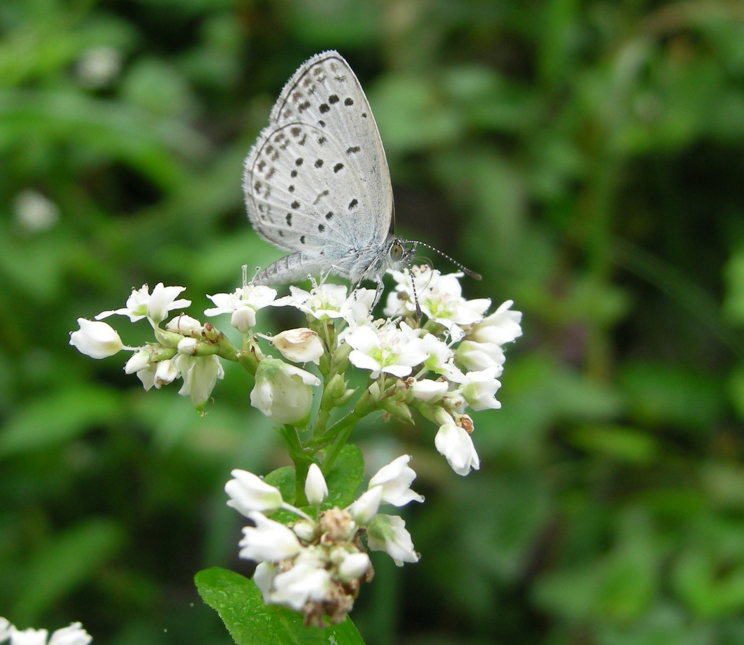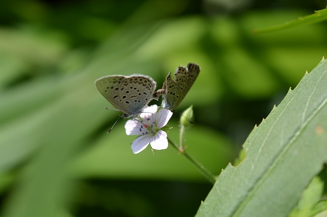 ヤマトシジミ たとえ 色が褪せていても たとえ 羽が破れ傘のようでも 君を好きだという思いだけは誰にも負けない 君は眩しいほど美しく 触覚の先まで溌溂としているけれど ぼくに不似合いというわけではない 君がゆったりと ゲンノショウコの花の蜜を吸っているのが 何よりの現の証拠 〜〜2018年6月2日〜〜 |