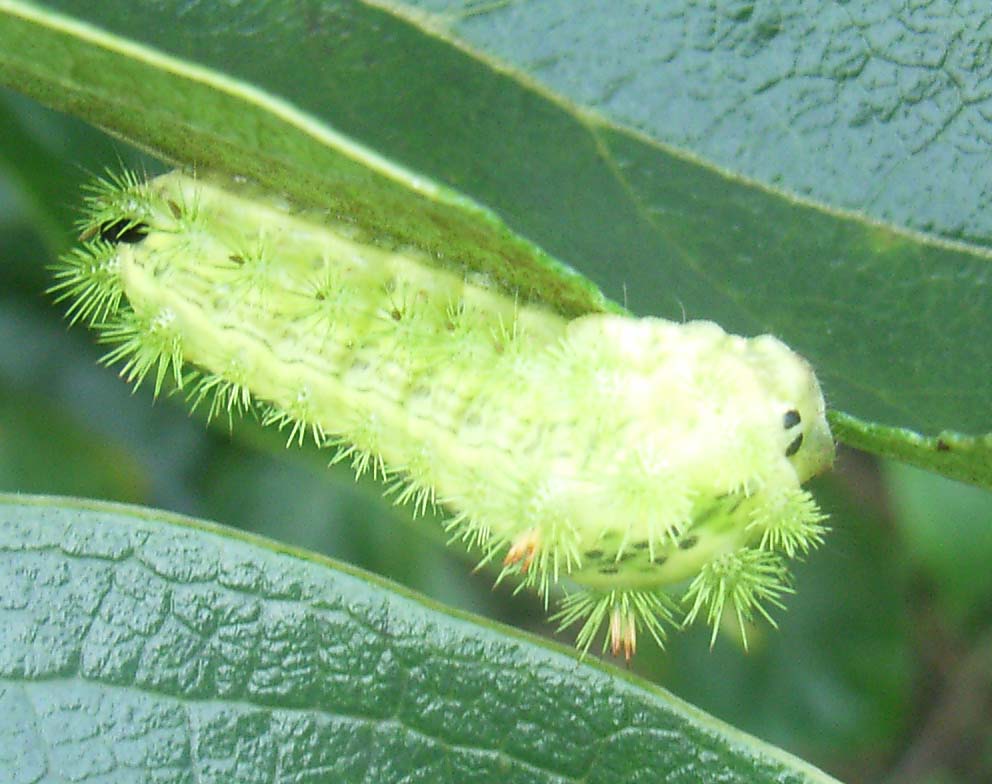 | 2006・7・24 佐賀県鹿島市・幼虫 食べているのはカキの葉っぱ。 |