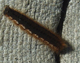 遊歩道の真ん中にいたので、踏まれないよう葉っぱで移動して貰っていたら「きゃあ!毛虫をさわってる!」と悲鳴が。さわってないって。移動させてるだけ。