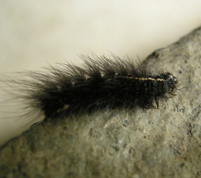 キハラゴマダラヒトリ・幼虫に から元気を出そうとしても なかなか元気の出ない朝 まっ黒い毛虫に出会った 玄関のドアを開けたら そこにいた ちょっと驚いただけで ゆったりと 歩き出す これだけ見事なまっ黒をしょって すこしもいばらずに 歩いてる 君! ヒトは こうはいかないんだ これだけ見事な背中をしょってれば ヒトは 他人を脅かすよ ヒトは 他人を小馬鹿にするよ しゃがんだわたしが むふふ とわらい 見上げた君が くくく とわらう そして わたしは元気に出掛け そして 君は元気な繭になるだろう 〜〜2012年6月9日〜〜 |
