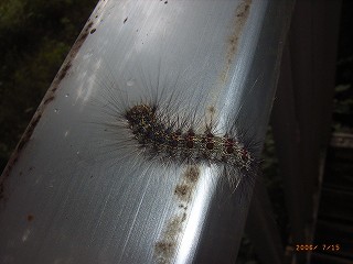 | 2006・7・15 北杜市清里・山荘で撮影。幼虫 「シラガタロウ」の別名通り、毛は白い。 |
