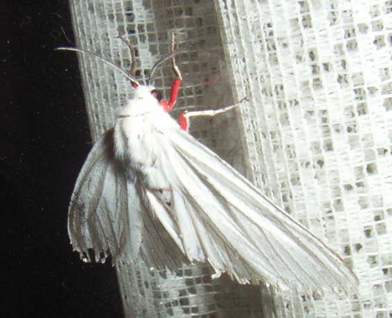 灯火に飛来。純白の翅。紅色の脚。