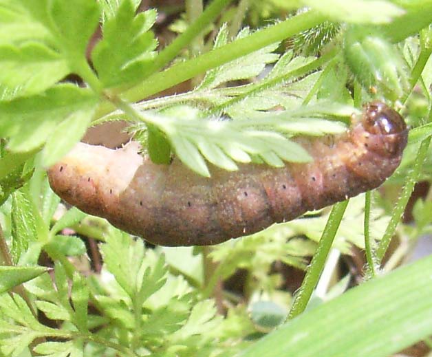 食草はカラスノエンドウ。終齢幼虫になると、地中に潜って蛹化するとのこと。
