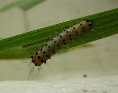 黒い点から生える毛が毒。成虫には無害という。
