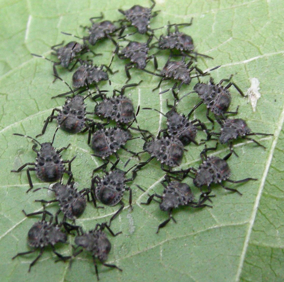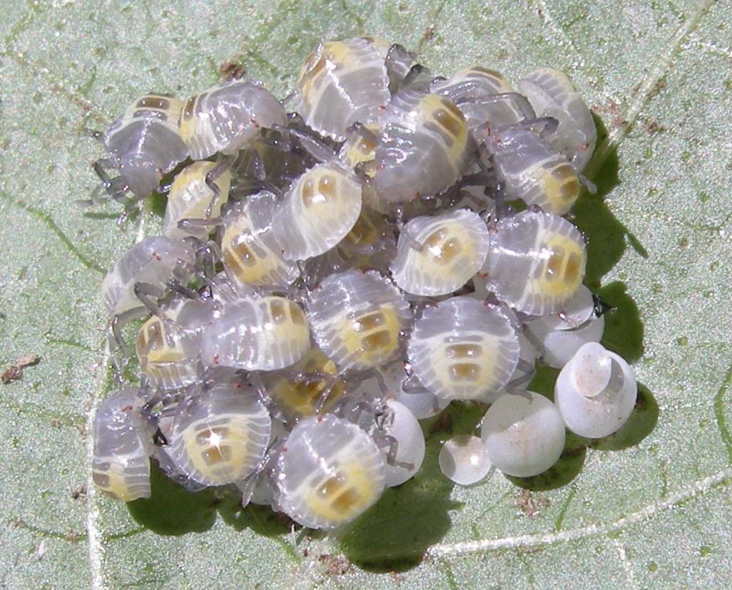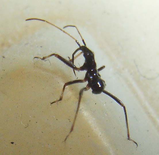 2007・6・22 庭に放す 庭のシソに移す。クモの子の「まどい」に 似ている |