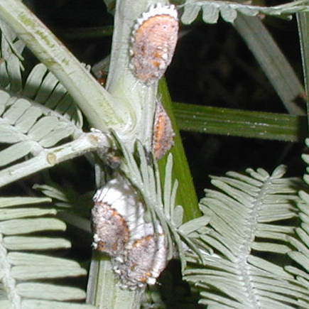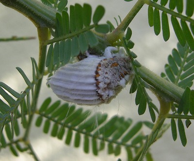 ワタフキカイガラムシ科 ♀5、6o 有翅♂3o前後 本州、四国、九州、南西諸島 柑橘類、南天などにつく)