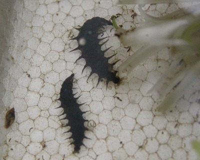 2023・6・18 左の個体。夕方になり、真っ黒い 翅に変化していた。この夜に羽化。♀と判明 |